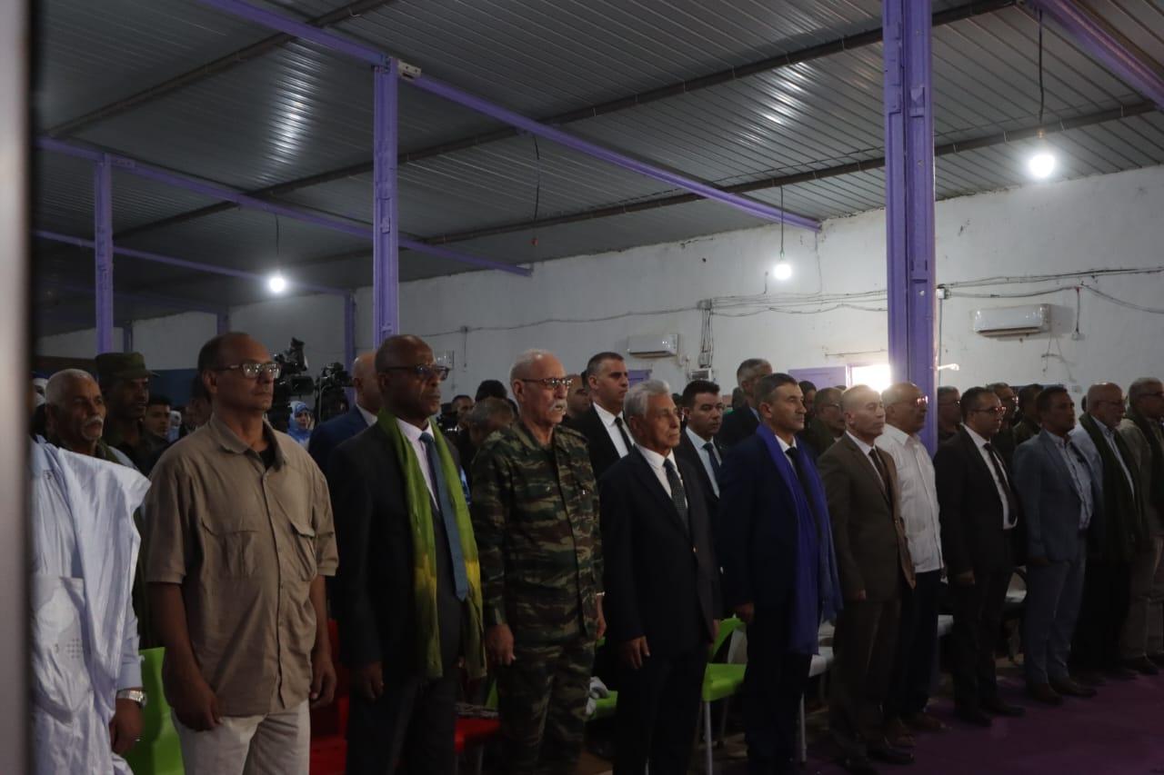 وبالنادي الجهوي للولاية ، أستهل الحفل بالوقوف للإستماع للنشيد الوطني ، ثم كلمة لوالي الولاية السيد محمد الشيخ محمد لحبيب ، رحب فيها برئيس الجمهوية والوفد المرافق له ، وكذا الوفود التي جاءت لتعبر عن تضامنها مع الشعب الصحراوي وقضيته العادلة .