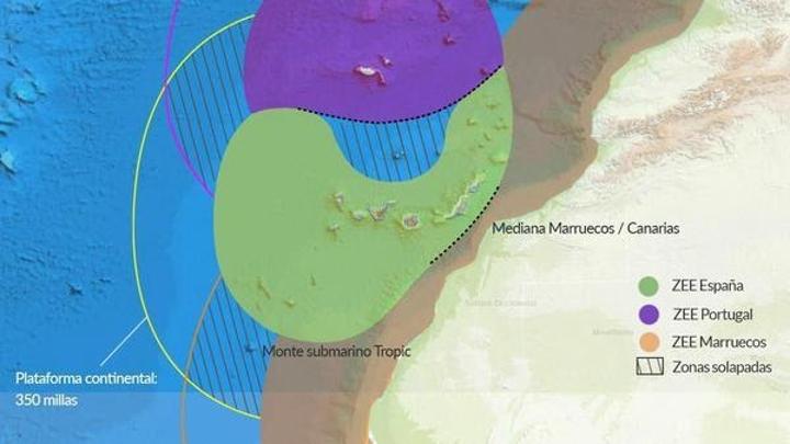 دون أي اتفاق تم توقيعه حتى الآن بين مدريد والرباط يحدد حدود مياههما ، حافظت جزر الكناري على فصل البحر مع الدولة المجاورة في نصف تلك الـ 117 كيلومترًا ، مع توزيع جزء على كل إقليم.
