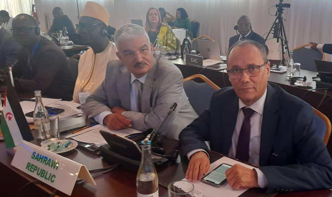 و تحضر الجمهورية الصحراوية اشغال هذه الدورة بوفد هام يضم الى جانب السيد مولود محمد فاضل الوزير المستشار لدى رئاسة الجمهورية المكلف بالشؤون الاقتصادية و المالية، كلا من، السيد لمن ي السفير المندوب الدائم لدى الاتحاد الأفريقي، و السيد محمد ليماد عالي سيد البشير، السفير الصحراوي لدى جمهورية كينيا، و السيد علا حيماد المسبالسفارة الصحراوية بكينيا.