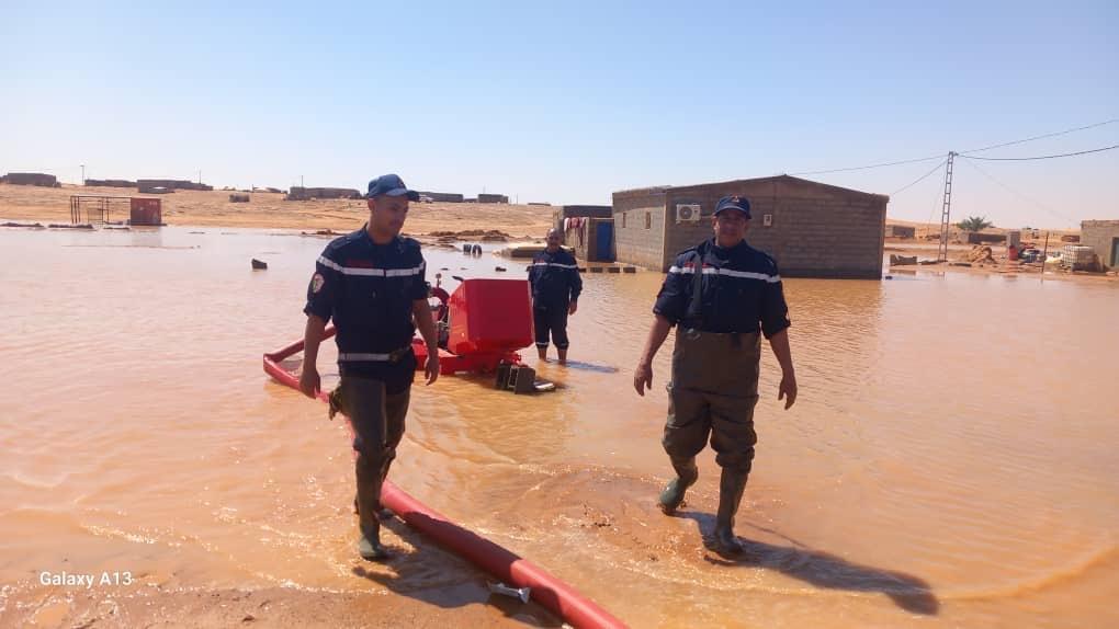 أفريقيا برس – الصحراء الغربية. تواصل وحدات الحماية المدنية الجزائرية والصحراوية تدخلاتها إثر التقلبات الجوية الأخيرة، التي شهدتها ولاية الداخلة، وذلك على خلفية تهاطل كميات هامة من الأمطار.