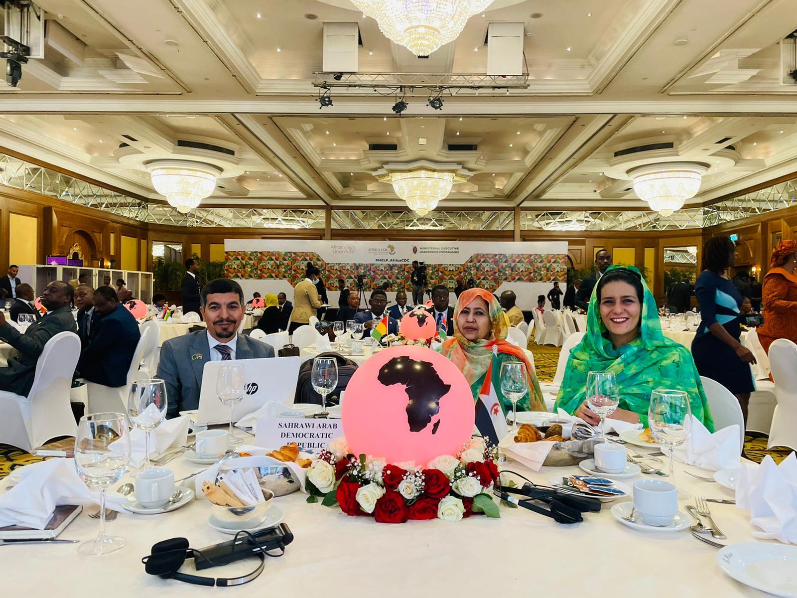أفريقيا برس – الصحراء الغربية. شاركت الجمهورية الصحراوية ممثلة بوزير الصحة العمومية السيدة خيرة بلاهي اباد في اشغال منتدى الاتحاد الافريقي رفيع المستوى المتعلق ببرنامج القيادة التنفيذية لمراكز مكافحة الامراض و الوقاية منها في افريقيا، و هو برنامج للقيادة التنفيذية مصمم خصيصًا لوزراء الصحة من اجل تعزيز القيادة القارية والعالمية لتحقيق أجندة 2063: ونظام الصحة العامة الجديد في إفريقيا.