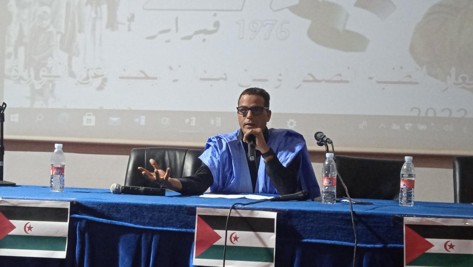 الأمين العام لإتحاد الصحفيين والكتاب تطرق لإدارة الحملات الإعلامية وتوحيد جهود المرافقة الطلابية للقضية الصحراوية ، وتعزيز جهود التحسيس بمعاناة وأوجه كفاح الشعب الصحراوي العادل داخل الاوساط الجامعية ونسج شبكة علاقات بوسائل الإعلام والفاعلين بمختلف المؤسسات والهيئات التخصصية بأ ماكن دراستهم .