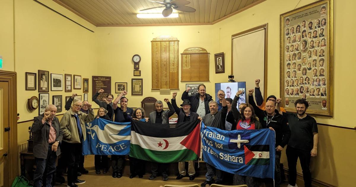 و في يوم الثلاثاء الماضي كان للوفد الصحراوي حضور خاص في اجتماعات المجلس النقابي المحلي بمدينة “بالارات” إذ ألقى محمد ميارة كلمة أمام الاجتماع الأسبوعي حول وضعية حقوق الإنسان بالمناطق المحتلة من الصحراء الغربية و بهذه المناسبة صادق المجلس خلال اجتماعه على توصية تدعم نضال الشعب الصحراوي من أجل الحرية والاستقلال و تندد بالانتهاكات الصارخة لحقوق الإنسان في المناطق المحتلة من الصحراء الغربية من قبل السلطات المغربية كما طالب المجلس بممارسة الضغوط على دولة الاحتلال المغربية لوقف قمعها الممنهج والمستمر للشعب الصحراوي ووقف نهب ثرواته الطبيعية والعمل على انشاء اليات أممية لضمان ذلك حتى يتمكن من ممارسة ذلك الحق الغير قابل للتصرف او للتقادم.