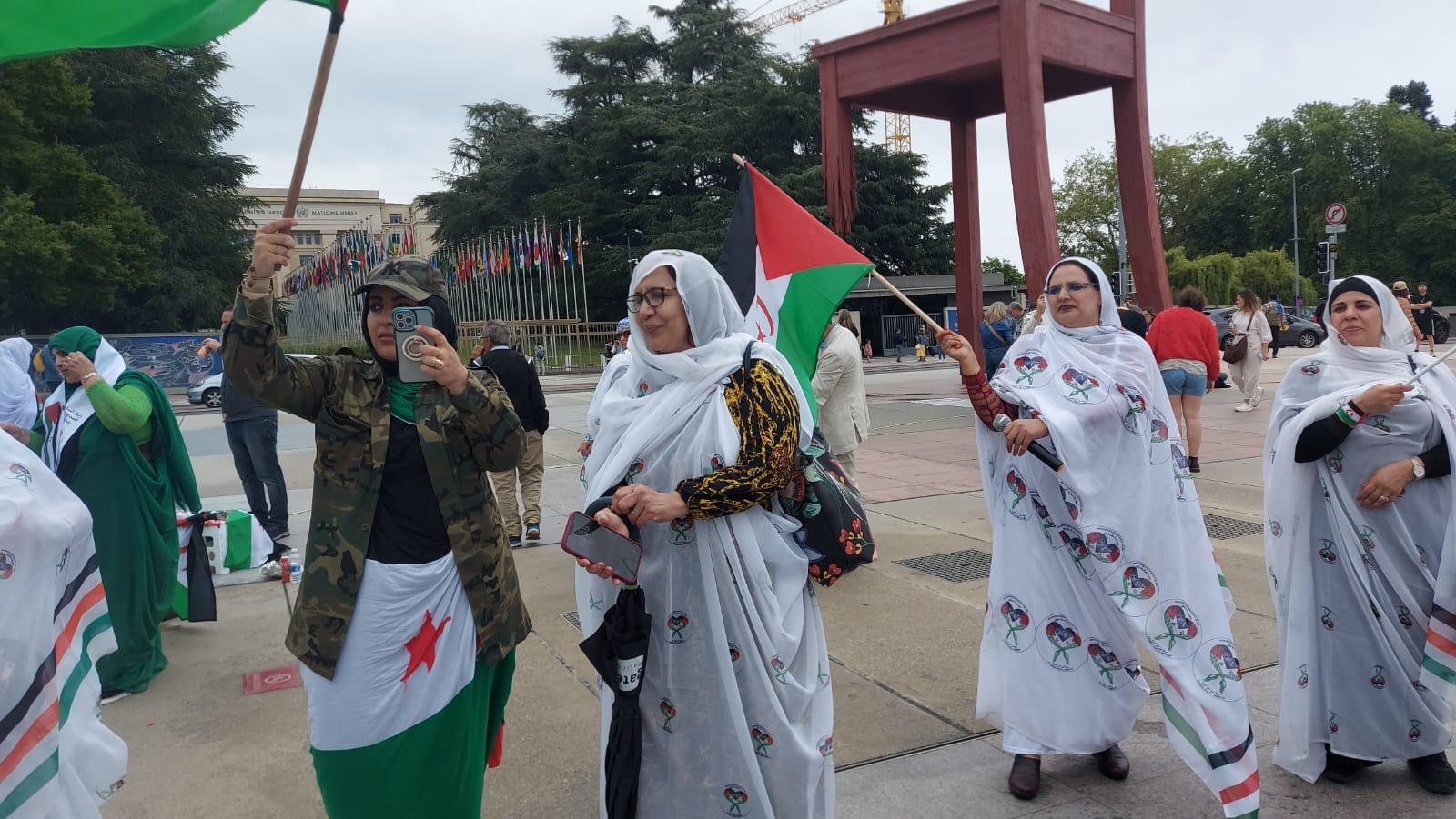 أفريقيا برس – الصحراء الغربية. إنطلقت اليوم الخميس التظاهرة التي دعت إليها جمعية بنات الساقية، بساحة الأمم أمام مقر مجلس حقوق الانسان التابع للأمم المتحدة بجنيف.