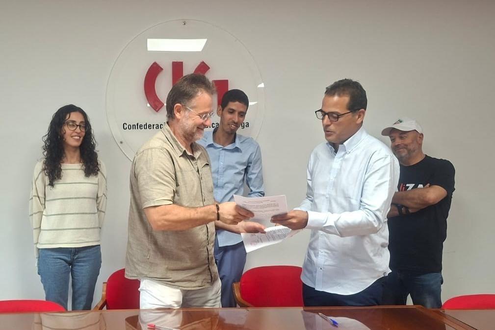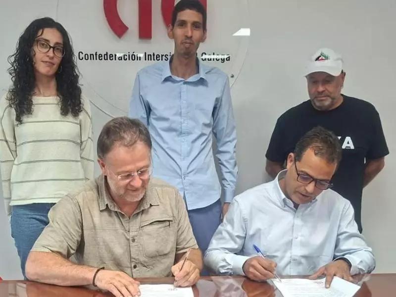 أفريقيا برس – الصحراء الغربية. أنهى وفد اتحاد العمال الذي يقوده الأمين العام للاتحاد نفعي أحمد محمد زيارته التي قادته لعدد من النقابات الأوروبية حيث شملت عدة بلدان بالقارة تحضيراً للاستحقاقات المقبلة، بتجديد توقيع بروتوكول التعاون الثنائي المشترك مع نقابة ciga بغاليثيا.