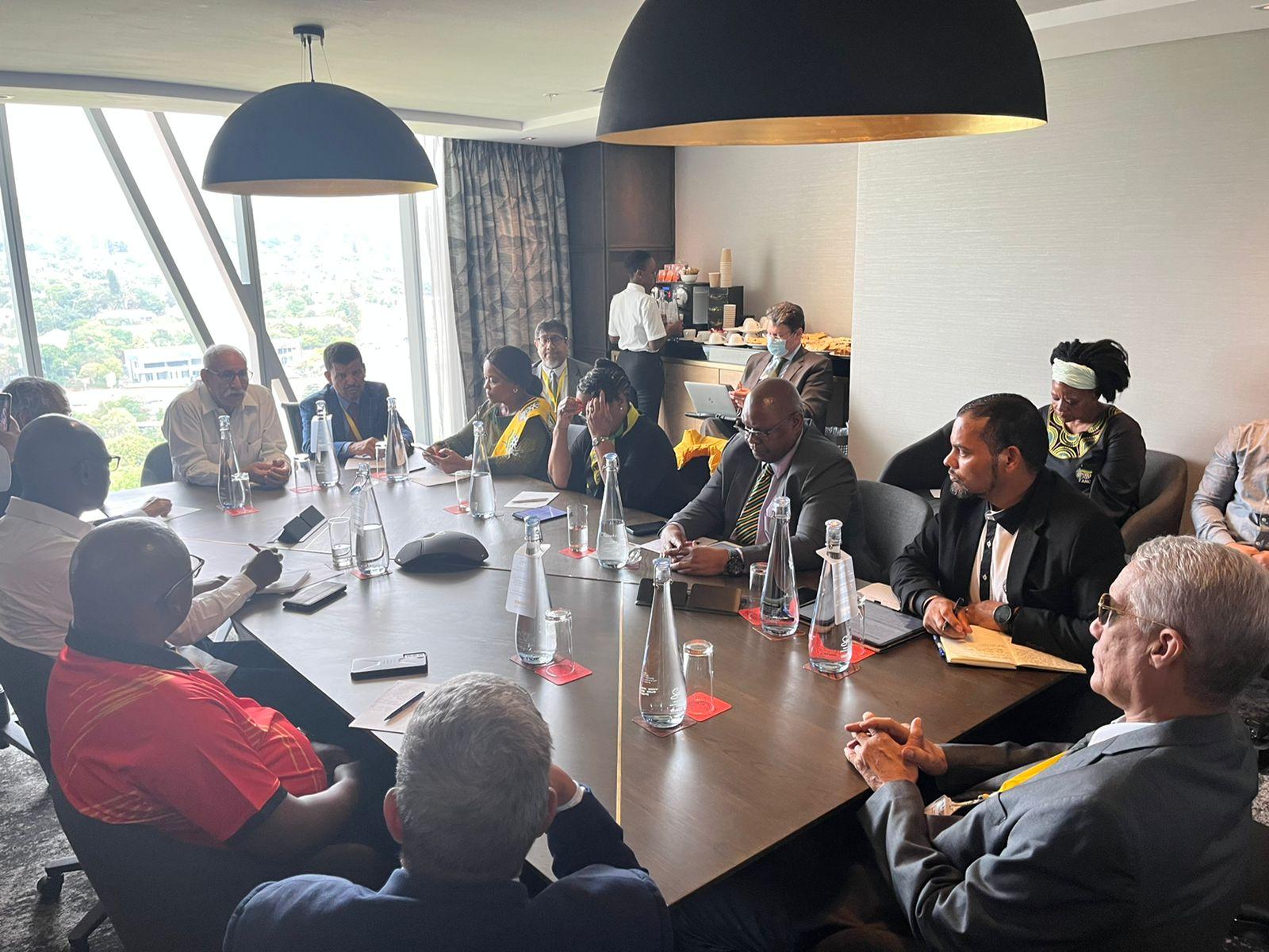 اللقاء الذي جرى بمقر إقامته ببريتوريا ، جددت خلاله الأحزاب المشكلة للائتلاف الحاكم في جنوب أفريقيا دعمها اللامشروط للشعب الصحراوي ، مؤكدين على أن اللقاء فرصة لتقوية العلاقات القوية التي تربطهم مع جبهة البوليساريو ، وكذا البحث عن اليات جديدة للتعريف بالقضية الصحراوية.