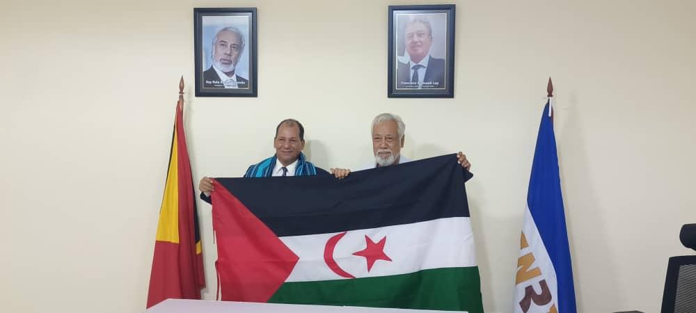 أفريقيا برس – الصحراء الغربية. استقبل الزعيم التاريخي والوطني التيموري، أيقونة النضال من أجل تقرير المصير والاستقلال، الرئيس السابق لجمهورية تيمور الشرقية الديمقراطية، رئيس حزب المؤتمر الوطني لإعادة إعمار تيمور، السيد كاي رالا تشانانا غوسماو، اليوم الثلاثاء في العاصمة ديلي، السفير الصحراوي لدى جمهورية تيمور الشرقية الديمقراطية، السيد أبا ماء العينين، و ذلك بمقر الحزب.