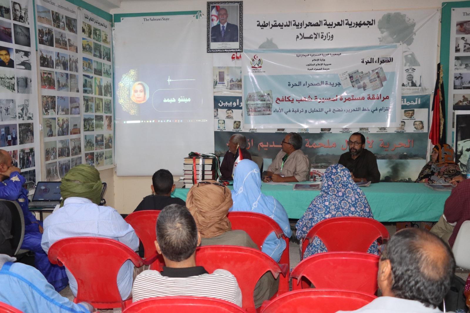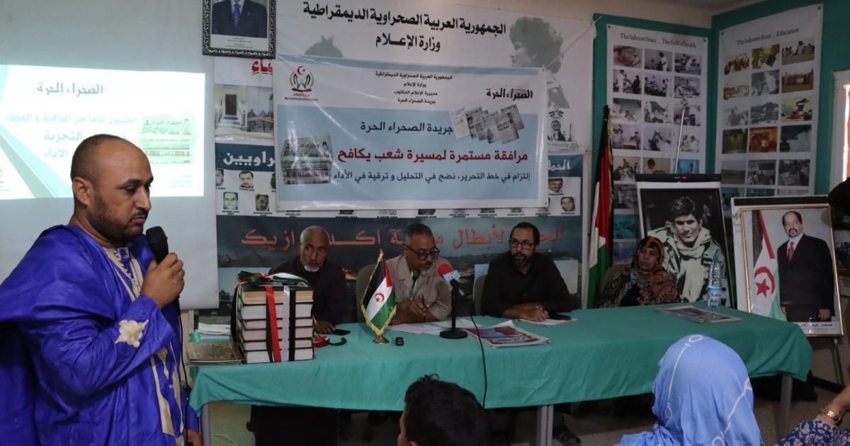 واستعرض رئيس تحرير جريدة الصحراء الحرة محمد السالك أحمد مختلف المراحل والمحطات الهامة التي عاشتها الجريدة منذ بداية تأسيسها والتي صاحبت كل التحولات التي شهدتها القضية الصحراوية من بدايات الثورة إلى اليوم