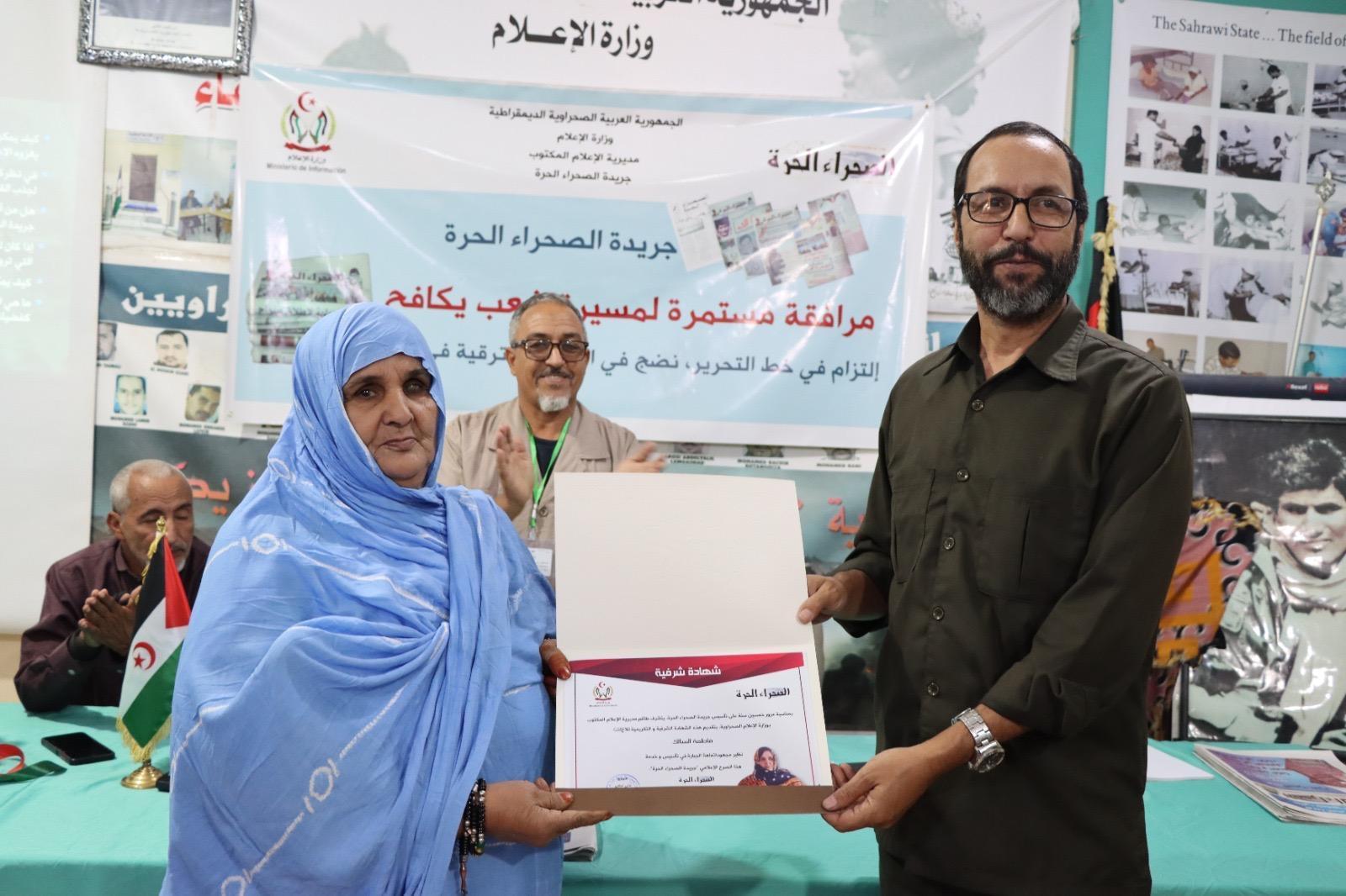 وخلال الحفل، كرمت جريدة الصحراء الحرة نخبة من مدرائها القدامى وصحافييها الذين تركوا بصمات خالدة في مسيرتها الإعلامية، وذلك عرفانًا لإسهاماتهم في ترسيخ العمل الإعلامي الصحراوي في إيصال كفاح الشعب الصحراوي.
