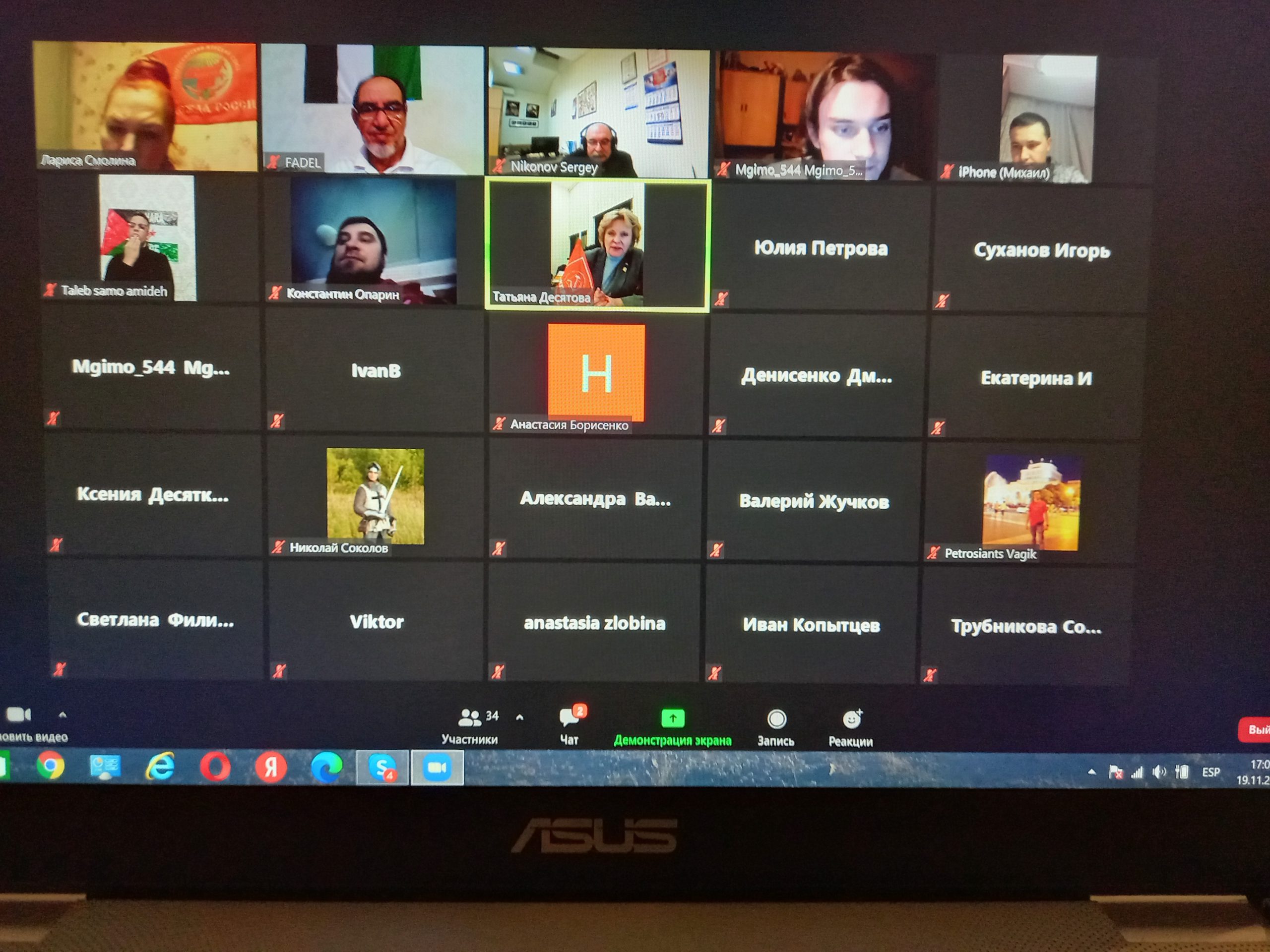 الصحراء الغربية – افريقيا برس. نشط يوم أمس، الدكتور علي سالم محمد فاضل، ممثل جبهة البوليساريو في روسيا الاتحادية محاضرة عبر تقنية التواصل المرئي عن بعد تحت عنوان: “الصحراء الغربية: أصول الصراع المسلح وسبل الحل”، إحتضنها نادي إفريقيا بجامعة العلاقات الدولية التابعة لوزارة الخارجية الروسية، وذلك بمشاركة طلبة الماجستير السنة الثانية في العلاقات الخارجية، وأساتذة من نفس الجامعة ومن جامعة سانت بطرسبرغ الحكومية، وباحثون، وممثلون عن الحزب الشيوعي لروسيا الاتحادية وشخصيات روسية.