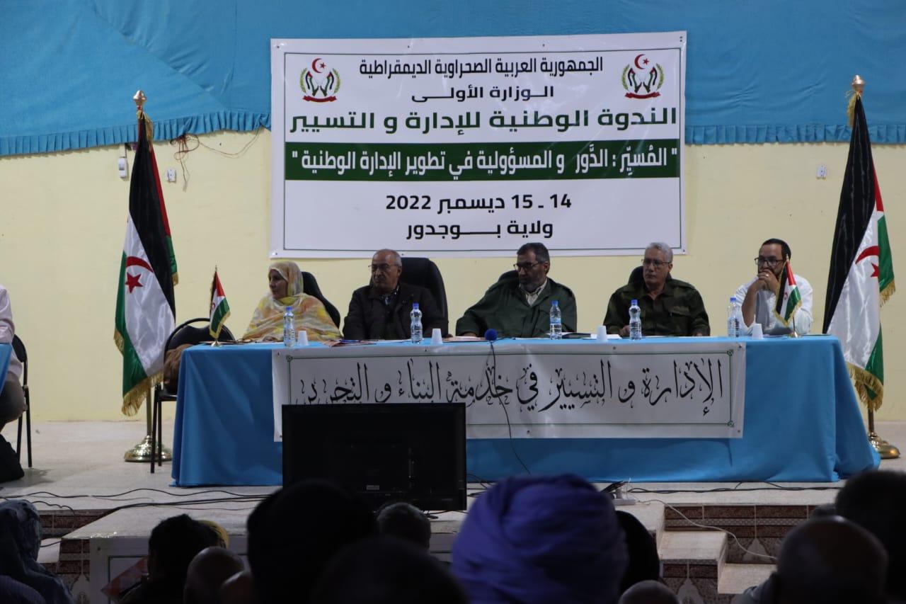 أفريقيا برس – الصحراء الغربية. أفتتحت اليوم الأربعاء بولاية بوجدور، أشغال الندوة الوطنية للإدارة والتسيير، بحضور الوزير الأول عضو الأمانة الوطنية بشرايا حمودي بيون وأعضاء من الأمانة الوطنية والحكومة وإطارات من مختلف مؤسسات الدولة والجبهة، بالإضافة الى الأداة الإدارية المسيرة على المستويات المحلية والجهوية والأساسية.