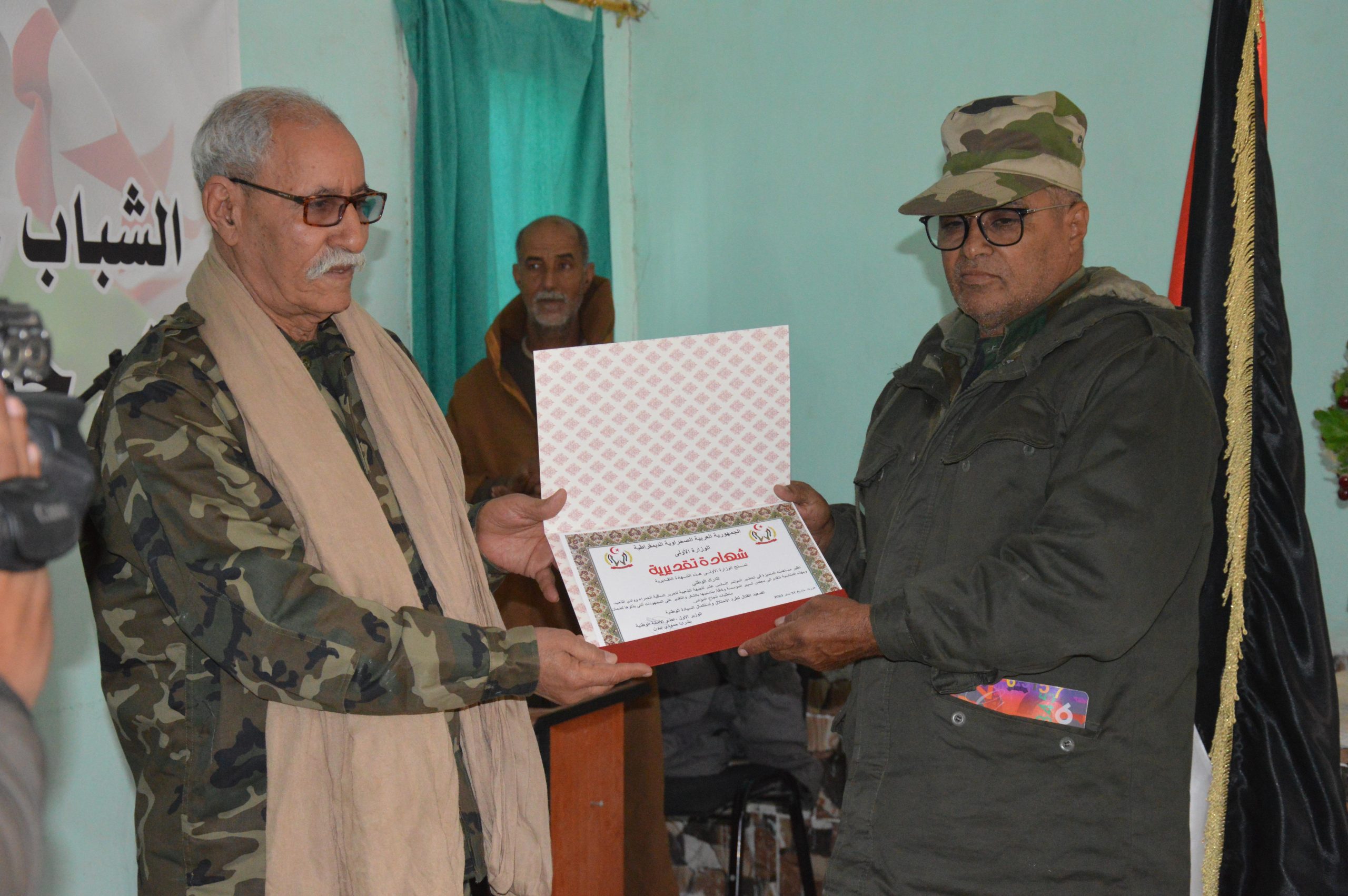 أفريقيا برس – الصحراء الغربية. أشرفت مساء اليوم الثلاثاء الوزارة الأولى على تكريم المؤسسات والجهات الوطنية تتويجا لمجهوداتها النبيلة ومساهمتها في إنجاح أشغال المؤتمر الـ16 للجبهة ، وذلك بحضور رئيس الجمهورية الأمين العام لجبهة البوليساريو السيد إبراهيم غالي وأعضاء من الأمانة والحكومة .