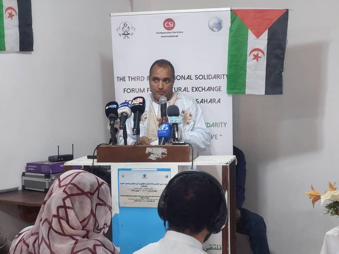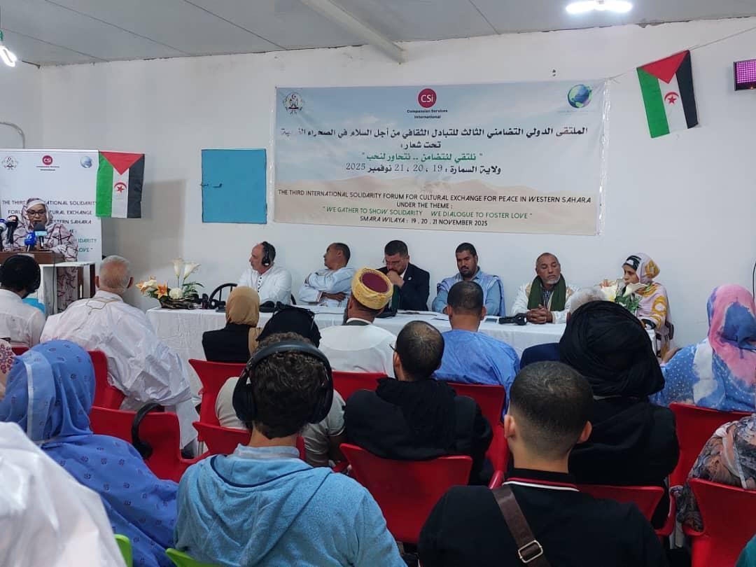 الملتقى الدولي الذي تشرف على تنظيمه وزارة الثقافة الصحراوية، يعقد تحت شعار “نلتقي لنتضامن… نتحاور لنحب” وتتواصل اشغاله على مدار ثلاثة أيام.