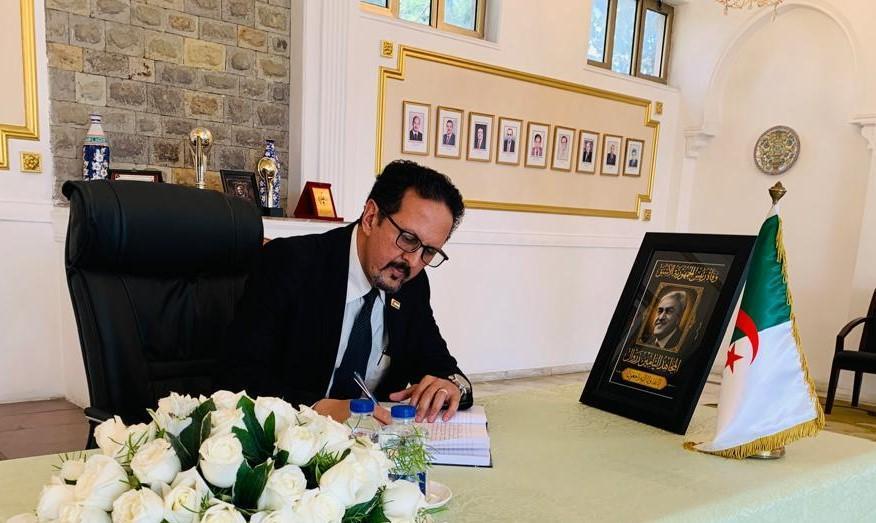 وخلال الزيارة، قدم الوفد الدبلوماسي الصحراوي تعازيه الحارة وتعازي الشعب الصحراوي قاطبة للحكومة والشعب الجزائري الشقيق، ولعائلة الفقيد في هذا المصاب الجلل، مشيدين بمناقب الراحل ومسيرته النضالية وتفانيه في خدمة وطنه والقضايا العادلة في القارة الأفريقية والعالم، وفي مقدمتها قضية الشعب الصحراوي الذي يحفظ للفقيد الكثير من الإحترام والتقدير.