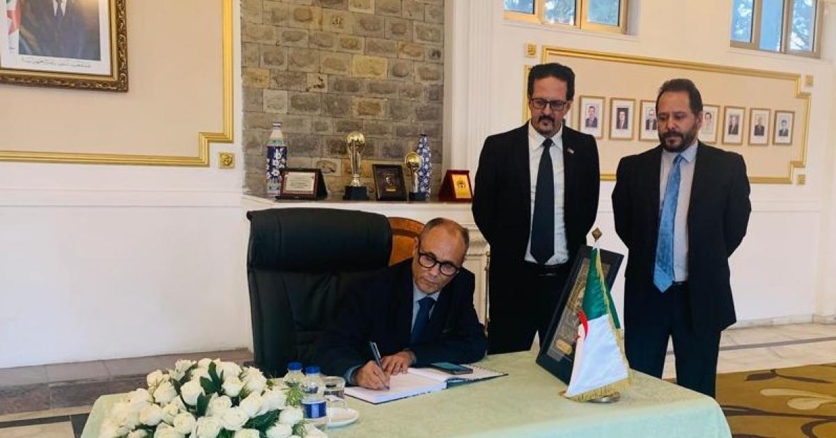 كما قام أعضاء الوفد بالتوقيع على سجل التعازي، حيث دونوا كلمات رثاء تعبر عن عمق الروابط الأخوية والمصير المشترك الذي يجمع البلدين والشعبين الشقيقين، سائلين المولى عز وجل أن يتغمد الفقيد بواسع رحمته ويسكنه فسيح جناته ويلهم الشعب الجزائري وذوي الراحل جميل الصبر والسلوان. (واص)