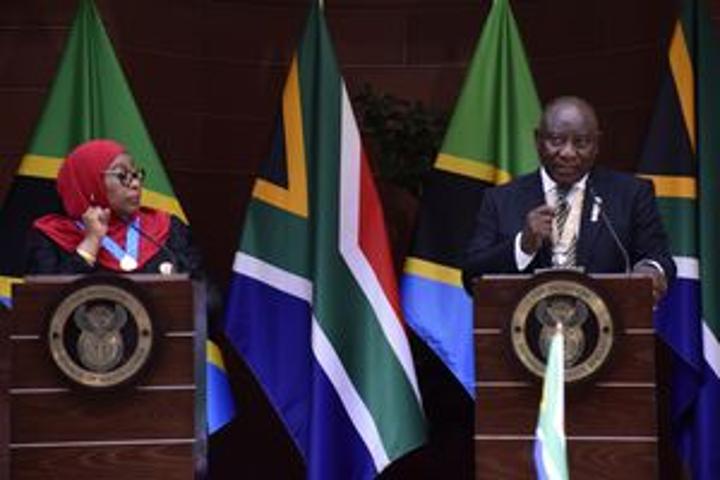 أفريقيا برس – الصحراء الغربية. جدد رئيس جنوب افريقيا، سيريل رامافوزا، ونظيرته التنزانية سامية حسن صولوحو، خلال زيارة اجرتها إلى بريتوريا، دعمهما لحق الشعب الصحراوي في تقرير المصير من خلال تنظيم استفتاء في الصحراء الغربية المحتلة من قبل المغرب.