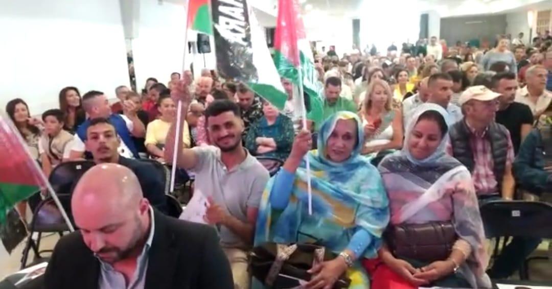 وحضر التجمع الإنتخابي الجالية الصحراوية بقوة وسط ترحيب كبير حضرته أيضا شخصيات سياسية وازنة تتقدمهم السيدة أنا أوراماس العضو البارز في البرلمان الإسباني والمدافعة الشرسة عن القضية الصحراوية.