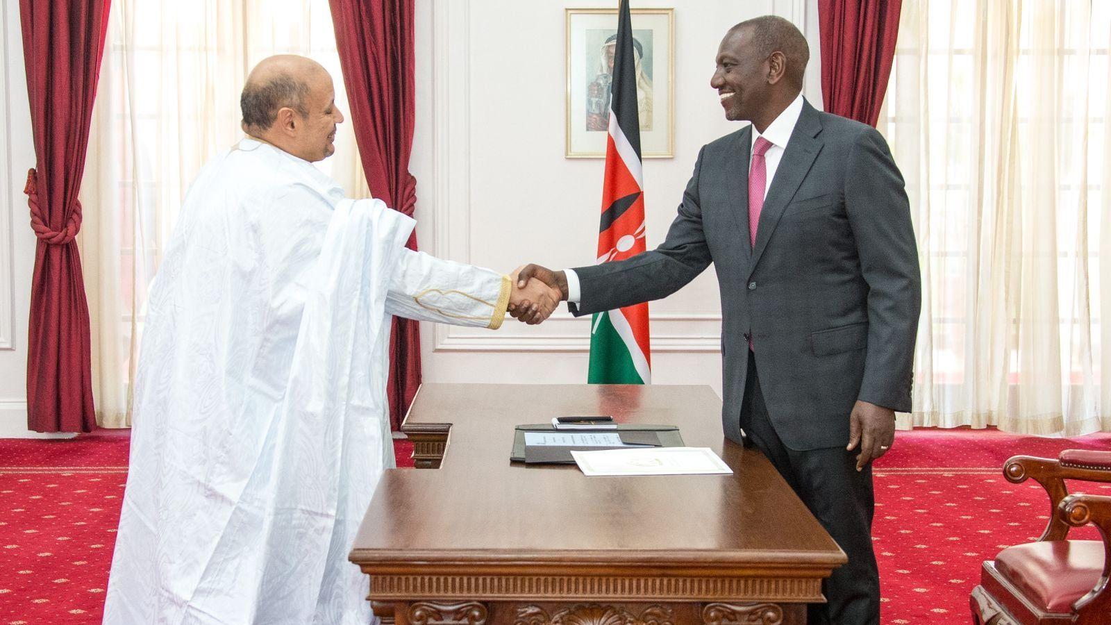 أفريقيا برس – الصحراء الغربية. إستقبل صباح اليوم الأربعاء الرئيس الكيني ويليام صاموي روتو بالقصر الرئاسي بنيروبي سفير الجمهورية الصحراوية الجديد بكينيا السيد ليمام محمد عالي سيد البشير حيث قدم له أوراق إعتماده التي تم بموجبها تعيينه من قبل الرئيس الصحراوي السيد إبرغالي، سفيرا مفوضا فوق العادة للجمهورية الصحراوية لدى جمهورية كينيا.