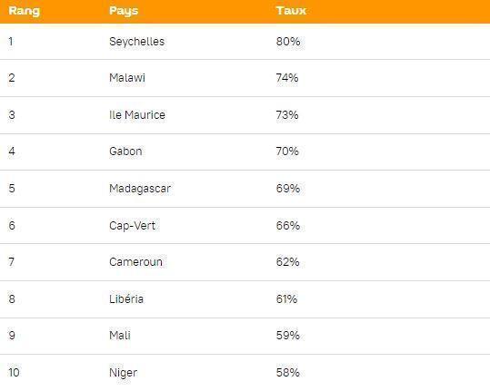 Ce tableau présente le Top-10 des pays africains qui affichent le plus haut taux de sensibilisation: