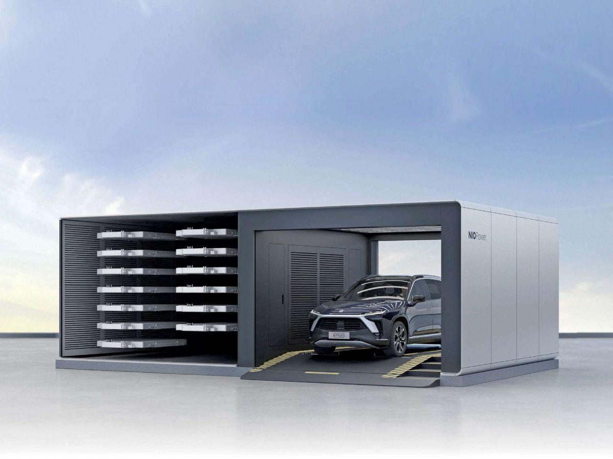 Le principe de battery swap (échange de batterie) est défendu par le constructeur chinois Nio, qui a déployé plus de 1300 stations d’échange dans son pays d’origine et s’apprête à en ouvrir en Europe. Le principe est simple : la voiture entre dans une station d’échange en forme de gros conteneur ; elle se positionne sur la plateforme et un système robotisé remplace la batterie vide par une pleine. L’échange ne prend pas plus de 5 minutes, contre 25 minutes de charge sur une borne rapide (de 10 à 80 % de la batterie).