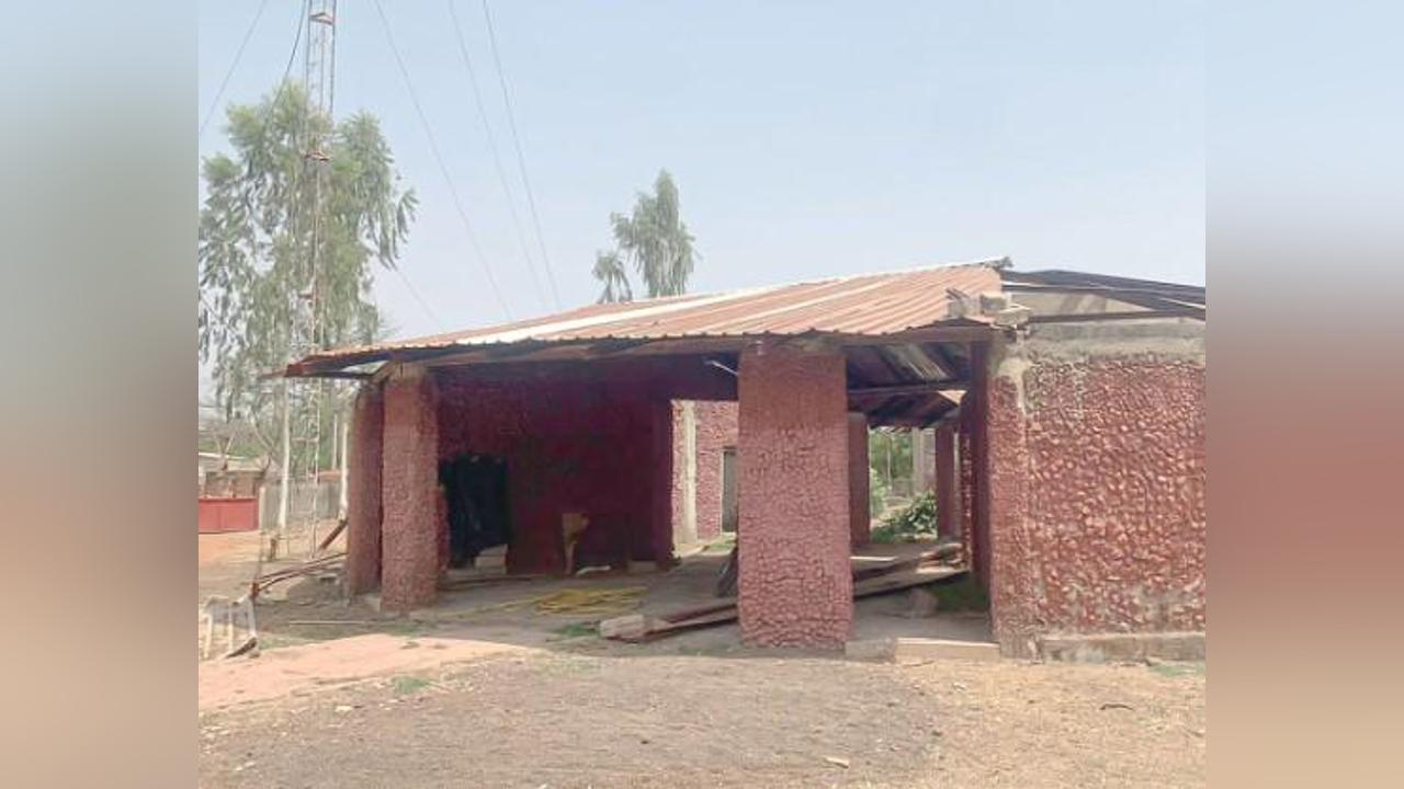 Le bâtiment abritant la radio communautaire et le centre multimédias et production, le bloc administratif est complétement fissuré.