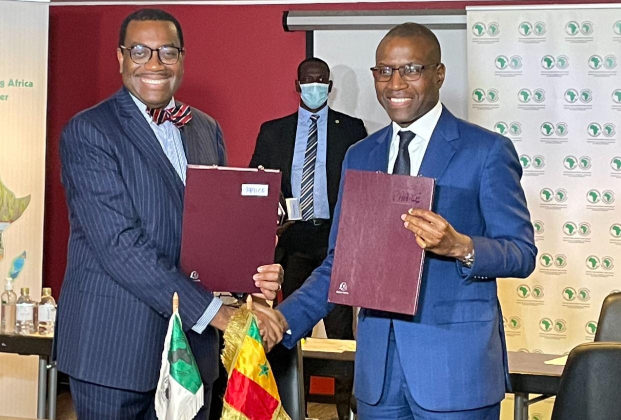 Africa-Press – Senegal. Le président de la Banque africaine de développement (BAD), Akinwumi Adesina, a procédé le 27 janvier 2022 à la signature de trois conventions de financement avec Amadou Hott, le ministre de l’Economie, du Plan et de la Coopération du Sénégal devant un parterre de partenaires et d’opérateurs économiques à Dakar. Ces accords de coopération et d’investissement s’inscrivent dans l’optique de soutenir la relance économique, l’accélération de l’industrialisation et la création d’emploi dans le pays.