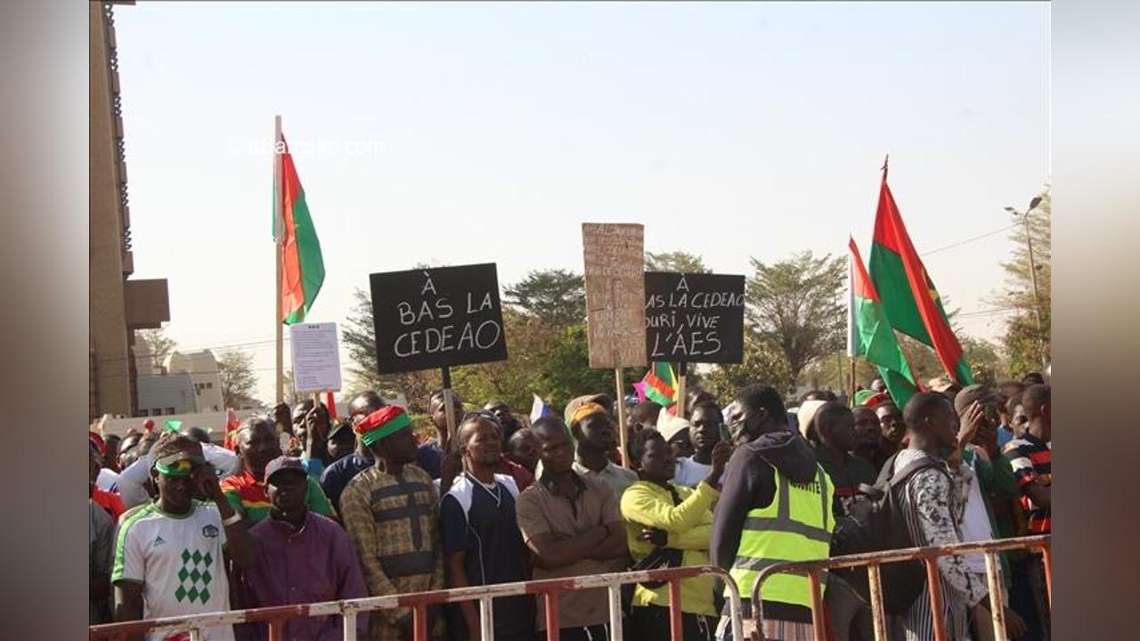De nombreux manifestants se sont par la suite mobilisés à la Place de la Nation pour exprimer leur joie quant à la désunion de l’AES d’avec la CEDAEO. Sur des pancartes véhiculant des messages de soutien aux Chefs d’Etat de l’AES et hostiles à la CEDEAO, on pouvait lire, entre autre: « La mort de la CEDEAO », « vive l’AES » peut-on lire sur ces pancartes. Certains ont même transporté sur les lieux « le cercueil », de la CEDEAO pour acter l’enterrement définitif de cette institution qui était depuis « moribonde ». Les jeunes de l’AES ont aussi réclamé la nomination du capitaine Ibrahim Traoré au grade de général. «En ce jour historique où nous célébrons la sortie officielle du Burkina Faso, du Mali et du Niger de la CEDEAO, nous, jeunes de l’AES, réclamons la nomination du président du Faso, le capitaine Ibrahim Traoré, au grade de général. Il le mérite. Ses actions sur le terrain sont louables et sa détermination est sans faille», a déclaré Ismaël Sawadogo, président du Conseil national des jeunes de l’AES.
