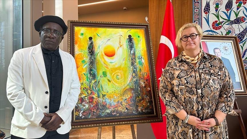 Surnommé le pinceau du sahel, Kalidou Kassé, a remis à l’ambassadrice de Türkiye au Sénégal, Nur Sagman, son tableau intitulé « Changement climatique ». L’artiste plasticien a également signé le registre de condoléances au siège de l’ambassade turque à Dakar.