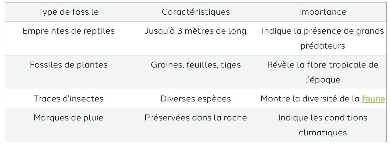 Ces fossiles alpins nous offrent un aperçu captivant d’un monde tropical disparu. Voici un tableau récapitulatif des principales découvertes: