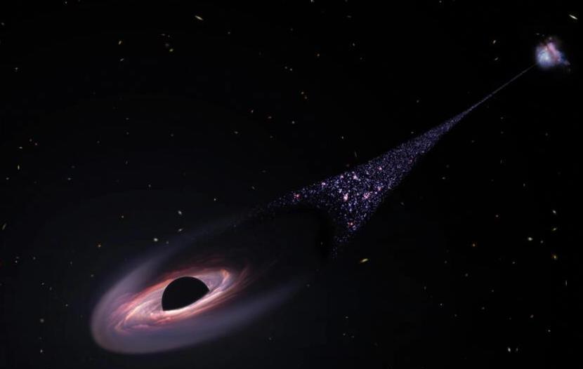 Africa-Press – Senegal. Un trou noir « supermassif » est en train de déchirer l’espace à toute allure et laisse derrière lui une traînée d’étoiles longue de 200.000 années-lumière, selon une découverte inédite annoncée par la NASA.