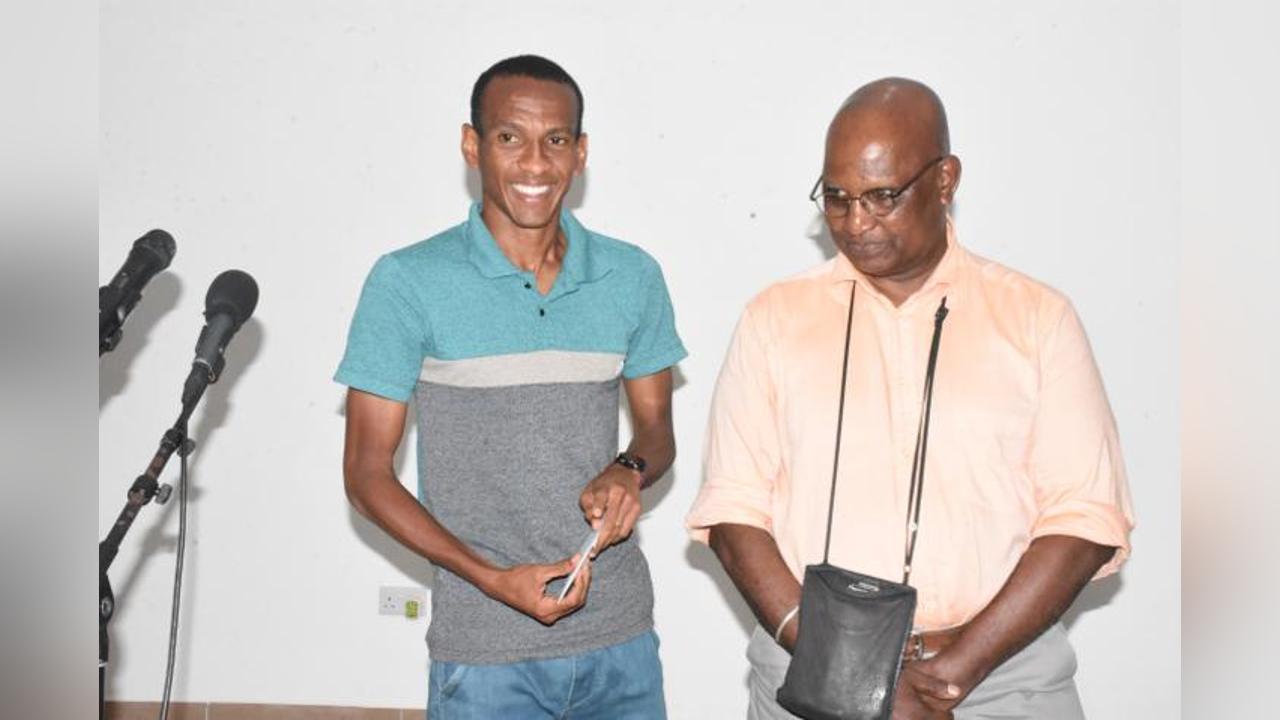 For his remarkable exploit at the recent 11th Indian Ocean Islands Games in Madagascar where he won two gold medals, long-distance runner Iven Moïse has been honoured by the Seychelles Athletics Federation who rewarded him with a R10,000 monetary reward, which is also in recognition of this historic accomplishment and in raising the athletics standard in the area of middle and long distance running.