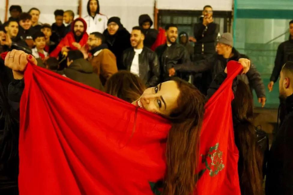 There are also celebrations in Paris. Morocco face Portugal on Saturday in the quarter-finals.