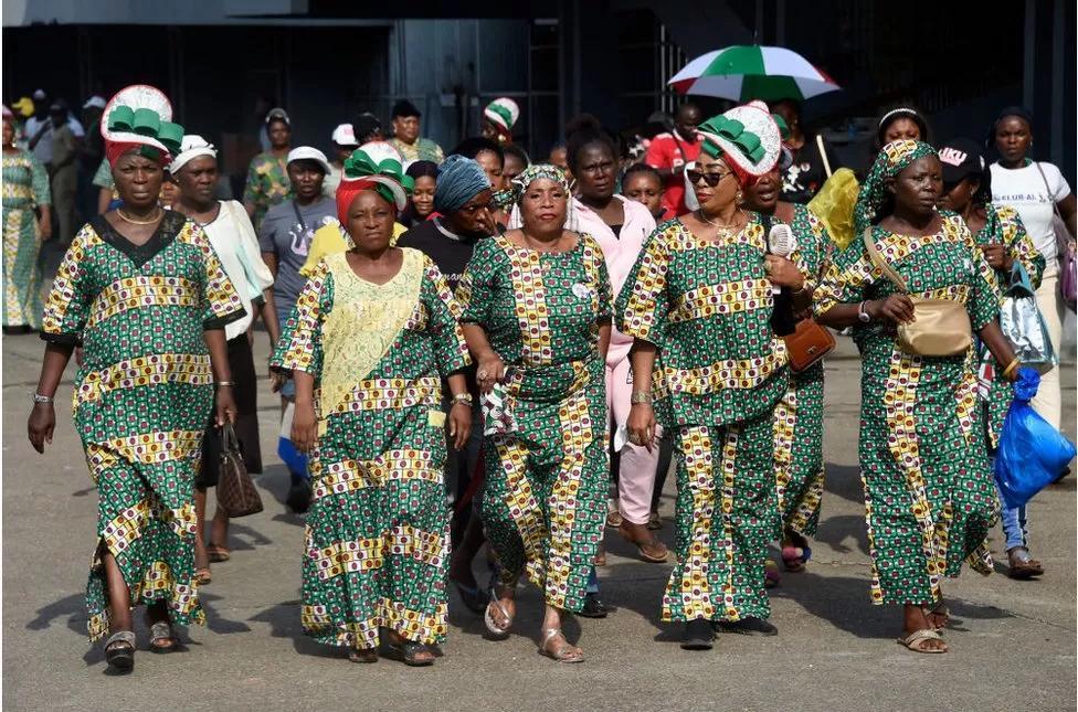 A different kind of fashion parade at an election rally in Lagos, where these women show their support for Nigerian presidential candidate Atiku Abubakar from the Peoples Democratic Party. The elections take place in February 2023.