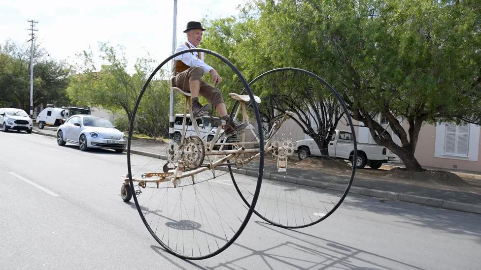 The next day a man rides down Prince Albert’s main street in a tricycle he built.