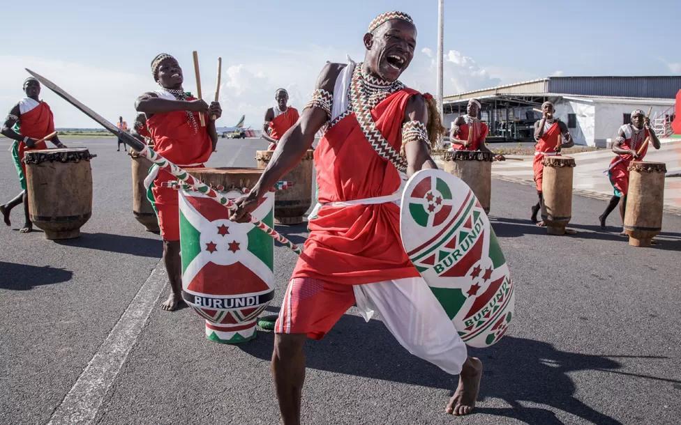Burundian drummers welcome UN chief António Guterres to the airport in Bujumbura on Friday for a high-level regional peace and security meeting.