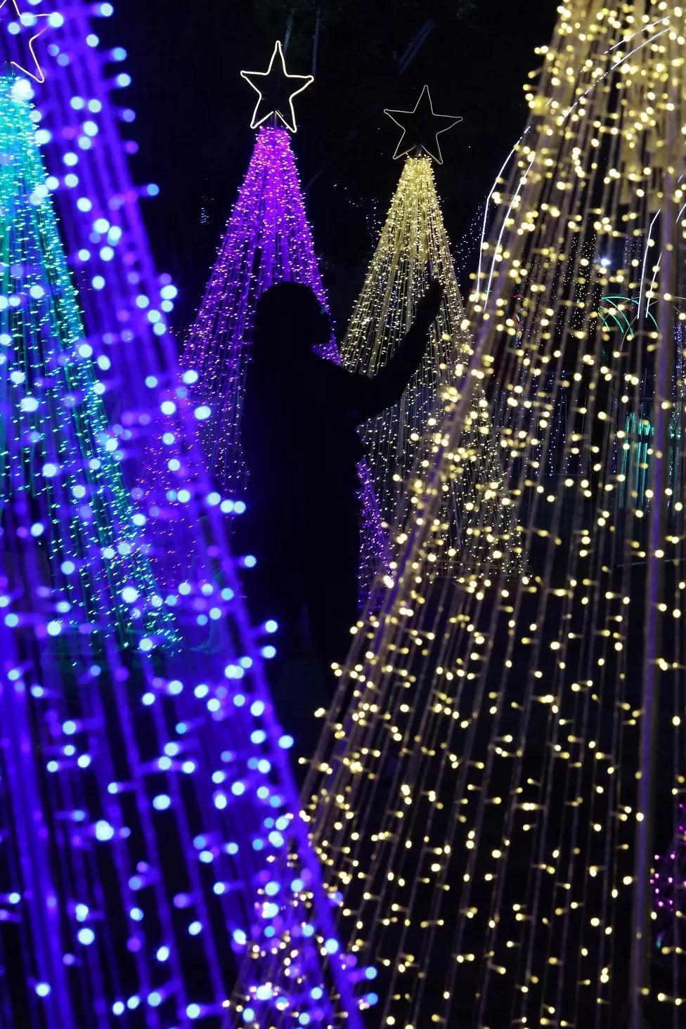 As the lights are turned on at a Christmas village.