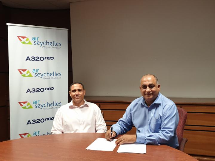 This agreement was inked in a short ceremony at the Air Seychelles headquarters, Pointe Larue between the principal secretary for youth and sports Ralph Jean-Louis, and Air Seychelles’ chief executive Sandy Benoiton.