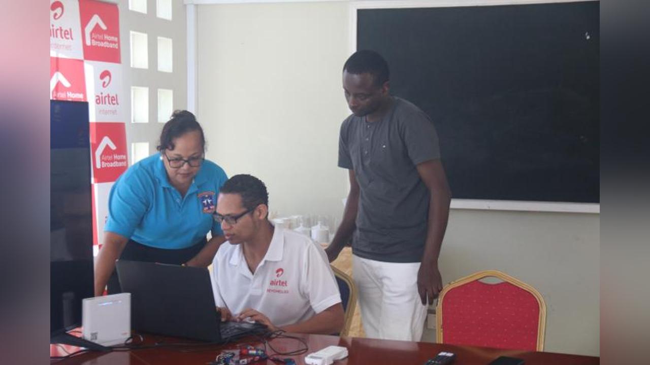 The formal handover of the modem took place on Friday morning at the school premises, with Brand and Marketing Communications manager, Jude Valmont, representing Airtel and Carol Athanasius, the Design & Technology teacher, accepting the router on behalf of Ile Perseverance.