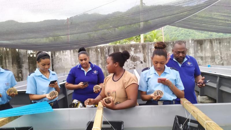 Aubrey Lesperance: Basically, our department itself right now consists of sixteen staff members. We have most of our staff in the research and operational side of the department. They are the ones conducting all the operations, running the facilities and running research and experiments with regard to aquaculture. They have been working along the line of experimenting with a few of the species that you can see and they have been trying to prove a lot of the concepts and insinuations that we have. For example, can we grow Bourgeois (Red Snapper)? They have been running these trials. There are several species of seaweeds for example. They have done the trials in the tanks and test with different parameters to see how fast they grow, because all these information are important for the private sector.