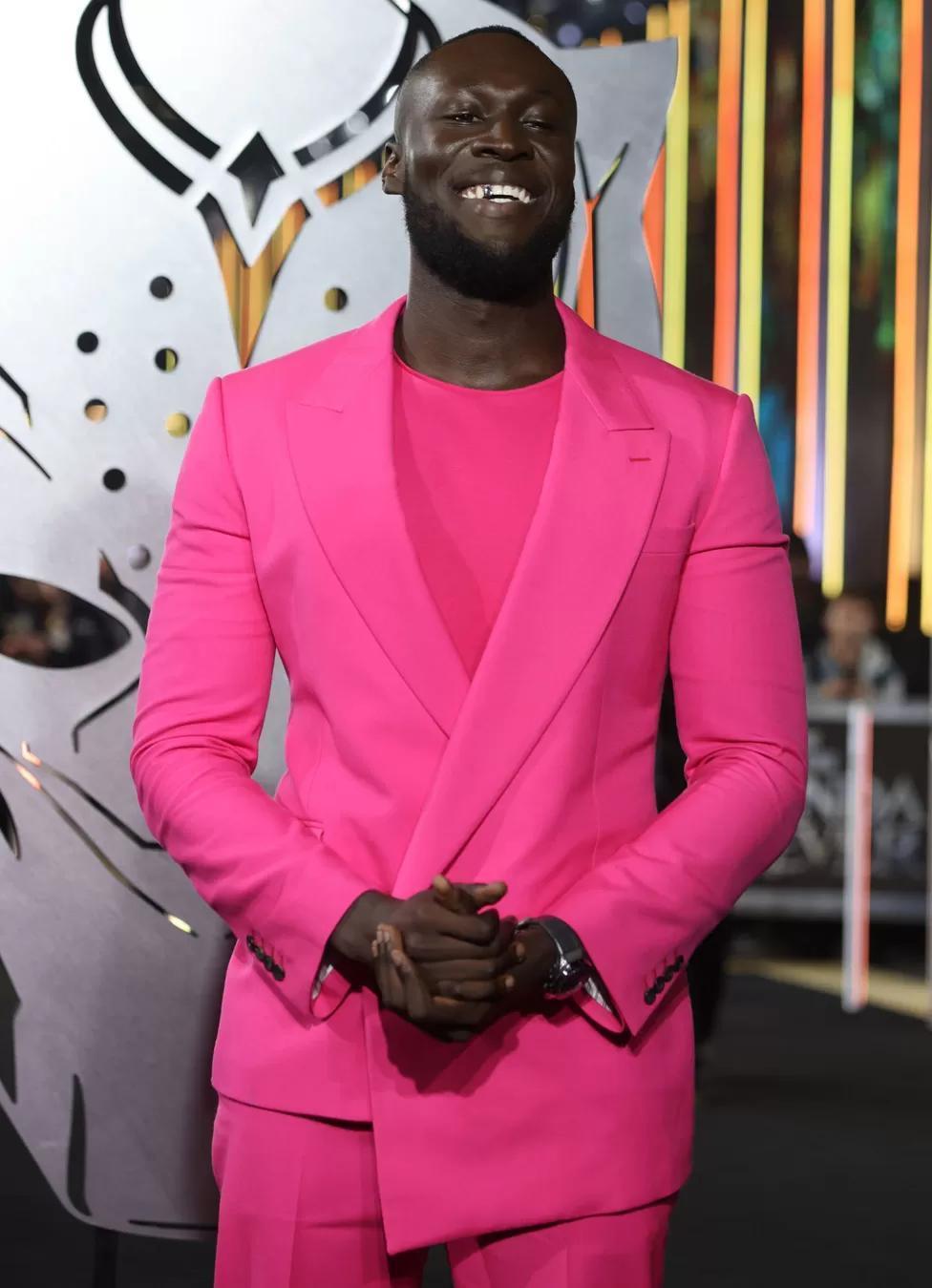 Stormzy wore a bright pink suit to the premiere