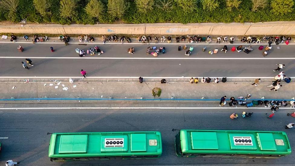 Many Foxconn staff walked miles along a road because there was no public transport available.