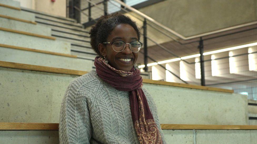 Azza Dirar, 30, said she has felt deeply depressed and despairing after witnessing environmental destruction in her home country Ethiopia. She encourages students to “tell the truth about their feelings and appreciate the beauty of life still here”.