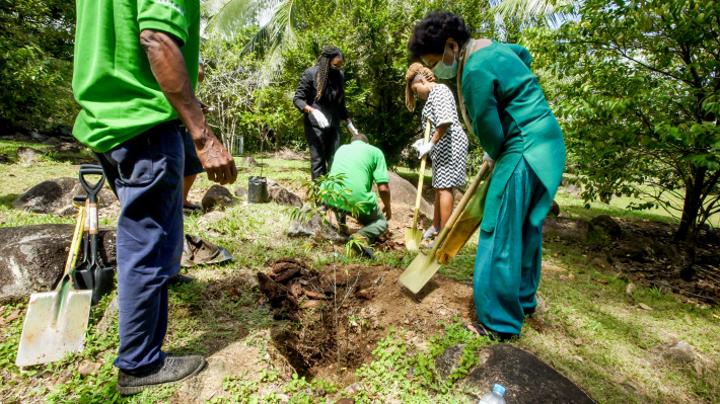 After their visit to BERI, the COL delegation who were on a retreat in the country to finalise a report for Commonwealth education ministers on climate change and education, ended their retreat in the country yesterday afternoon with a tree-planting activity at the Seychelles National Biodiversity Centre, Barbarons, where they planted 13 Rothmannia annea (Wright) keay (Bois citron) trees.