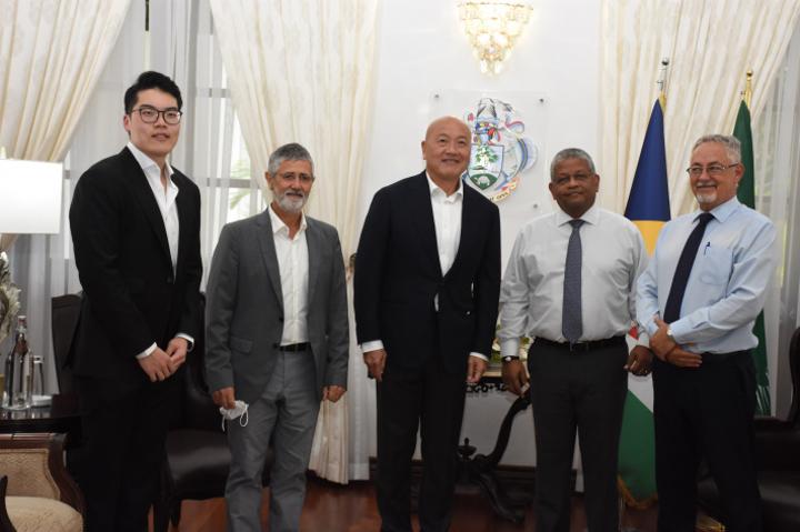 Africa-Press – Seychelles. The president and chief executive of Thai Union Group, Thiraphong Chansiri paid a courtesy visit to President Wavel Ramkalawan yesterday afternoon at the State House. He was accompanied by the general manager of the Indian Ocean Tuna Limited, Ricardo Lousio.
