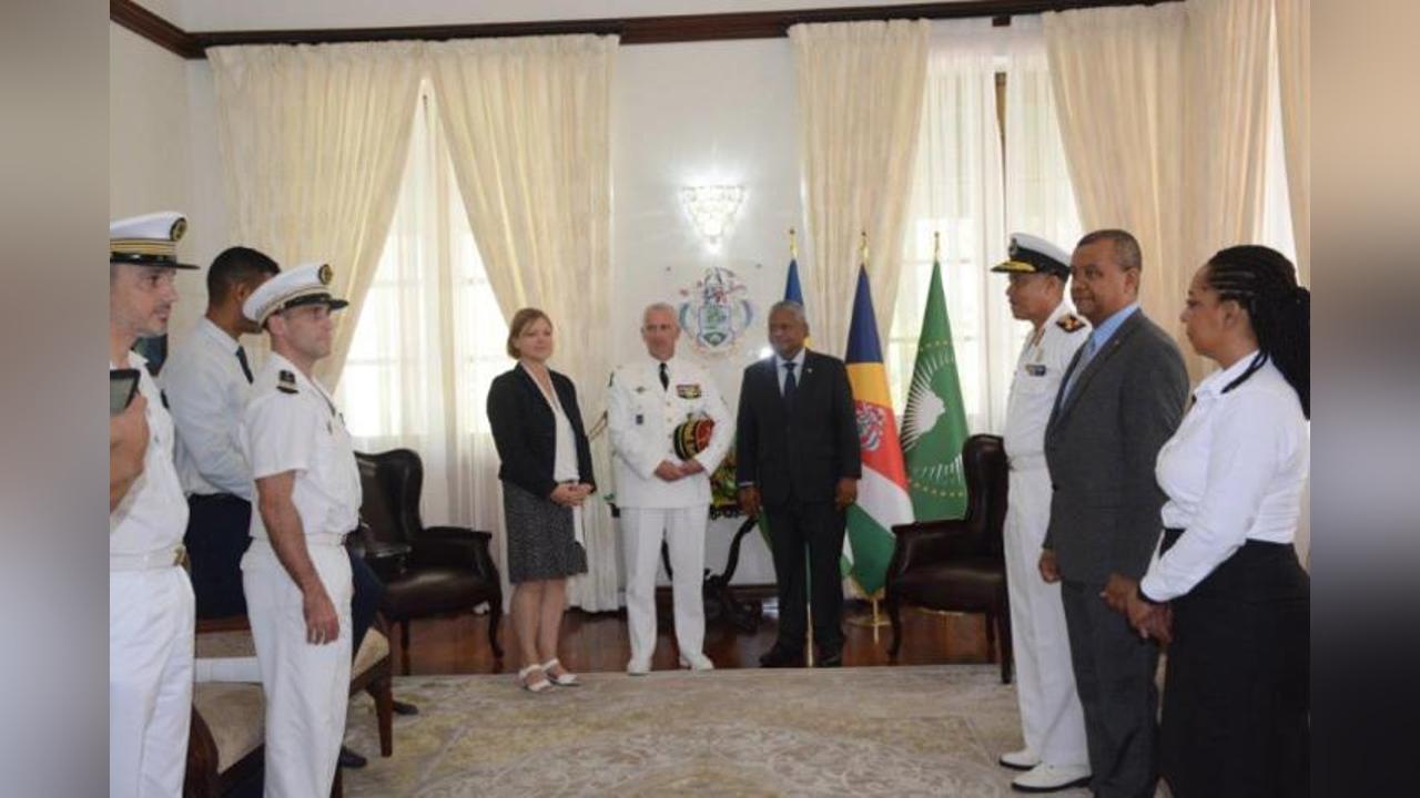 Africa-Press – Seychelles. On the afternoon of Friday, June 30, Hon. Sandy Arissol, on behalf of the National Assembly’s Defence and Security Committee (DSC), accompanied President Wavel Ramkalawan during a farewell courtesy call with Général de Brigade, Laurent Cluzel, ‘Commandant Supérieur des Forces Armées dans la Zone Sud de l’Océan Indien’ (COMSUP FAZSOI), at State House.