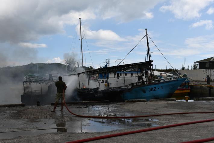 He noted that they also received help from 28 SFRSA fire fighters and a fire engine from the Seychelles Civil Aviation Authority (SCAA), including assistance from the Seychelles Port Authority (SPA), the Seychelles Coast Guard (SCG), the Marine Police and the SFA staff to remove the other boats away from the seven burning vessels so that the fire do not spread into them.