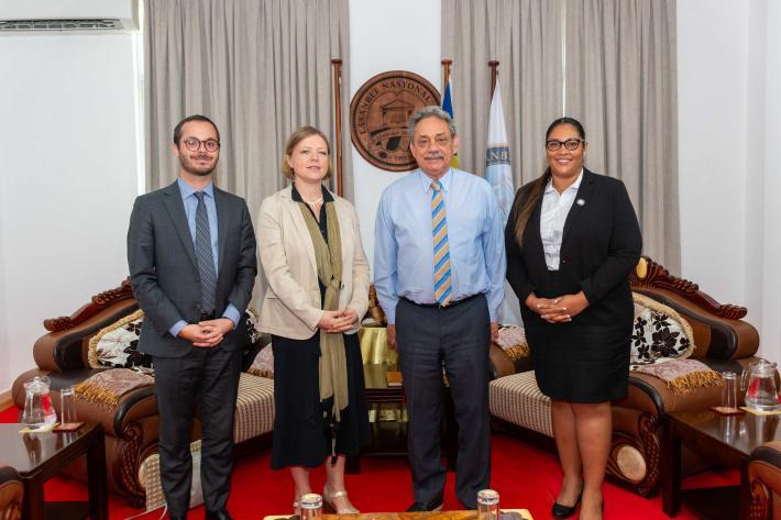 Ambassador Berkeley-Christmann was accompanied by Martin Albert, a diplomat from the Africa and Indian Ocean Department of the French Ministry of Europe and Foreign Affairs, whereas Hon. Mancienne was accompanied by the deputy Clerk of the National Assembly, Alexandria Faure.