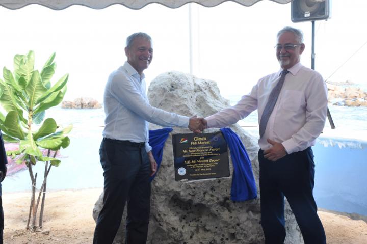 This follows the opening yesterday morning of the district’s new fish market by Designated Minister and Minister of Fisheries and the Blue Economy, Jean François Ferrari and the Ambassador of the European Union (EU) to Seychelles Vincent Degert, during a short ceremony to unveil the commemorative plaque to mark the event.