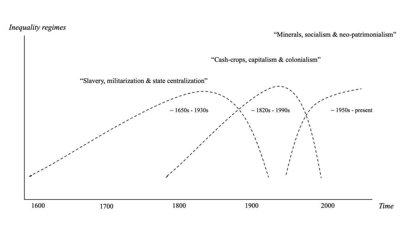 Figure 1: Illustration of shifting inequality regimes in Africa, 1600-present