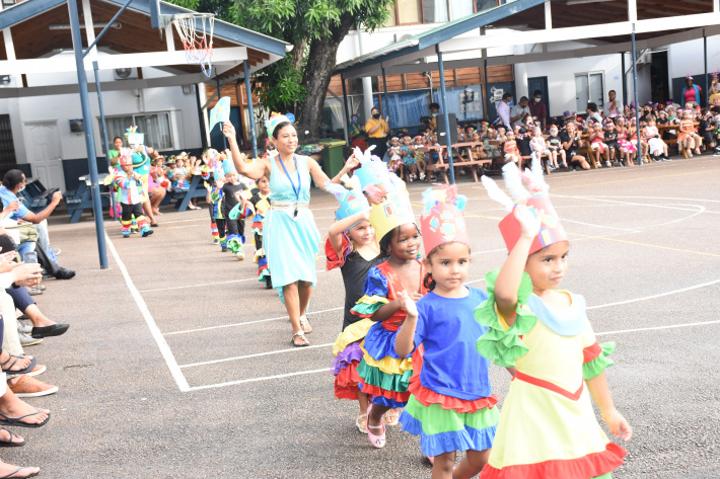 Aged between 3 and 5 years from Reception 1 and 2, the young pupils participating in the parade showcased their colorful hats and matching outfits to their excited audience.